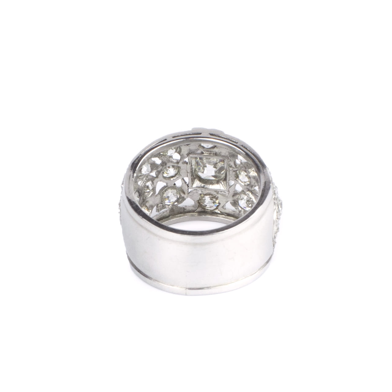 Anello a fascia anni 1930 in platino con diamanti a vari taglie antichi