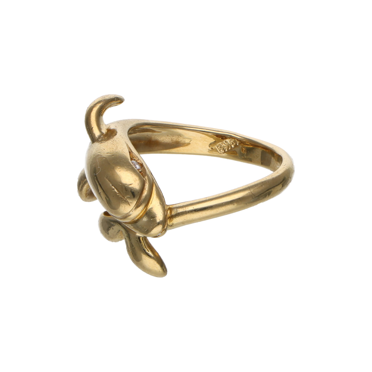 Originale anello a forma di delfino degli anni ’90, realizzato in oro giallo lucido.