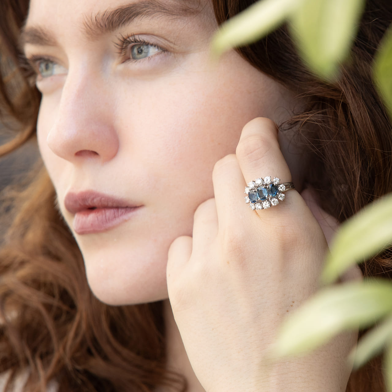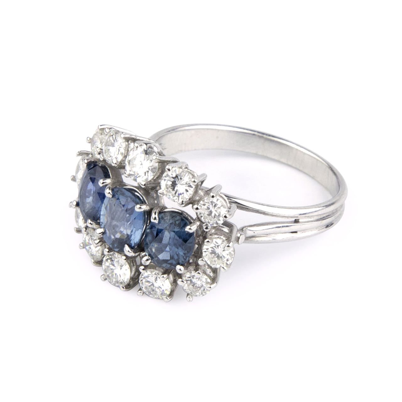 Anello trilogy in oro bianco 18kt Zaffiri e diamanti