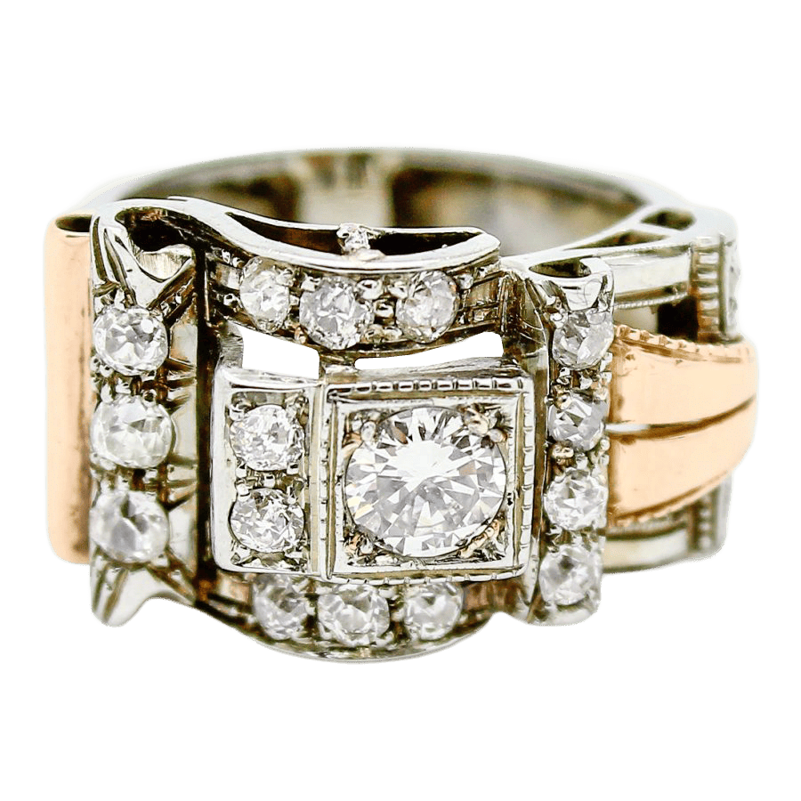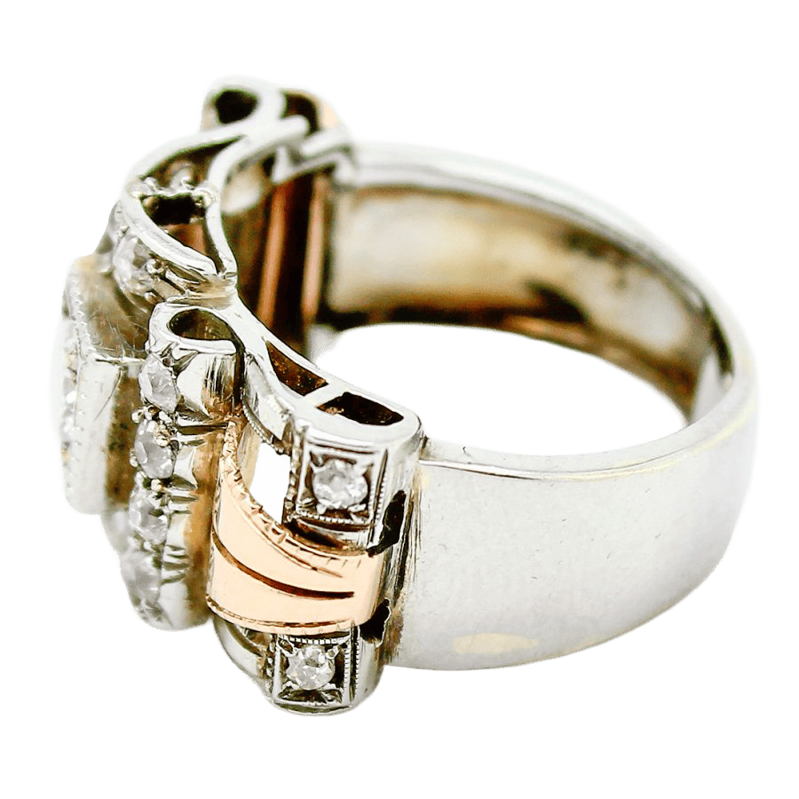 40s buckle ring in gold and diamonds