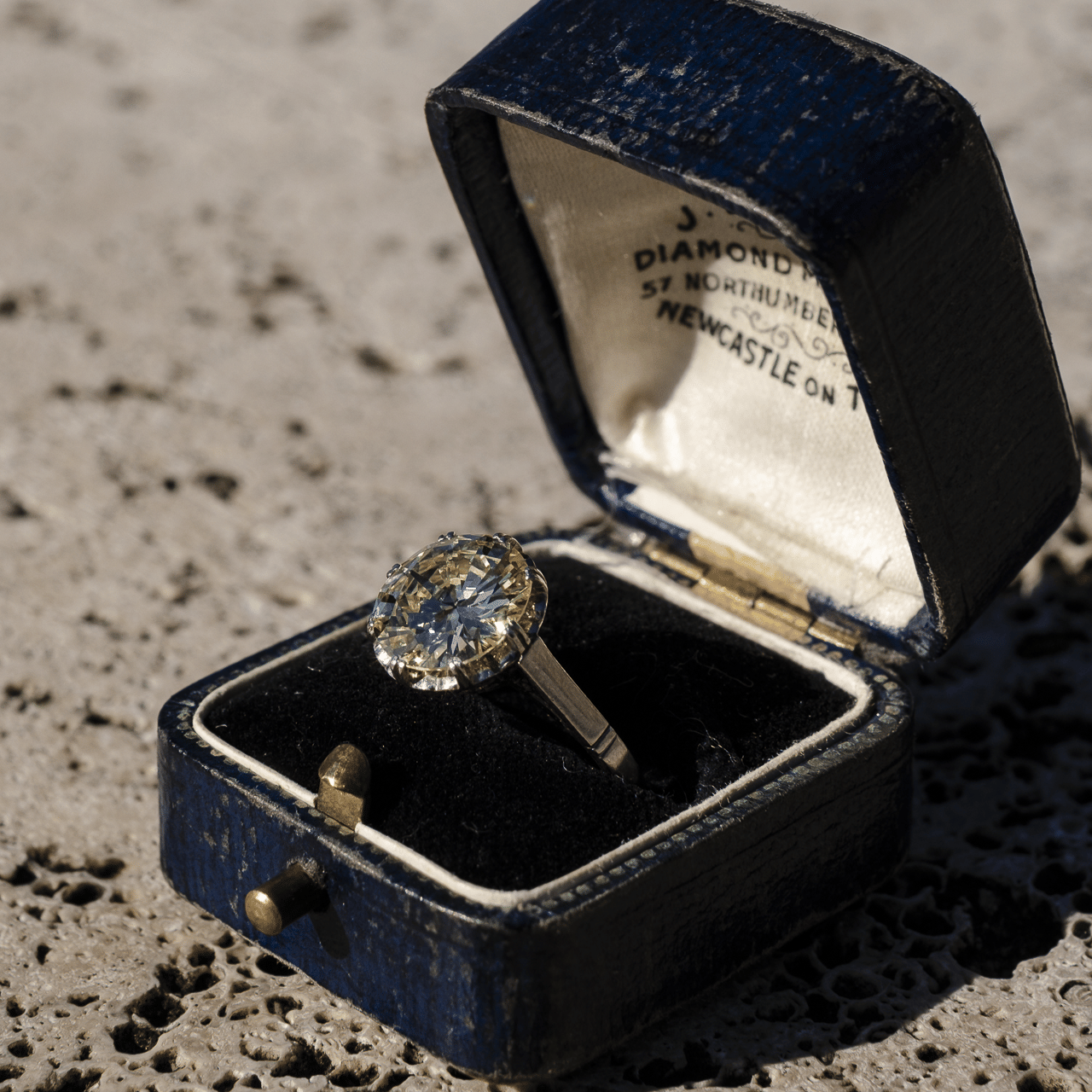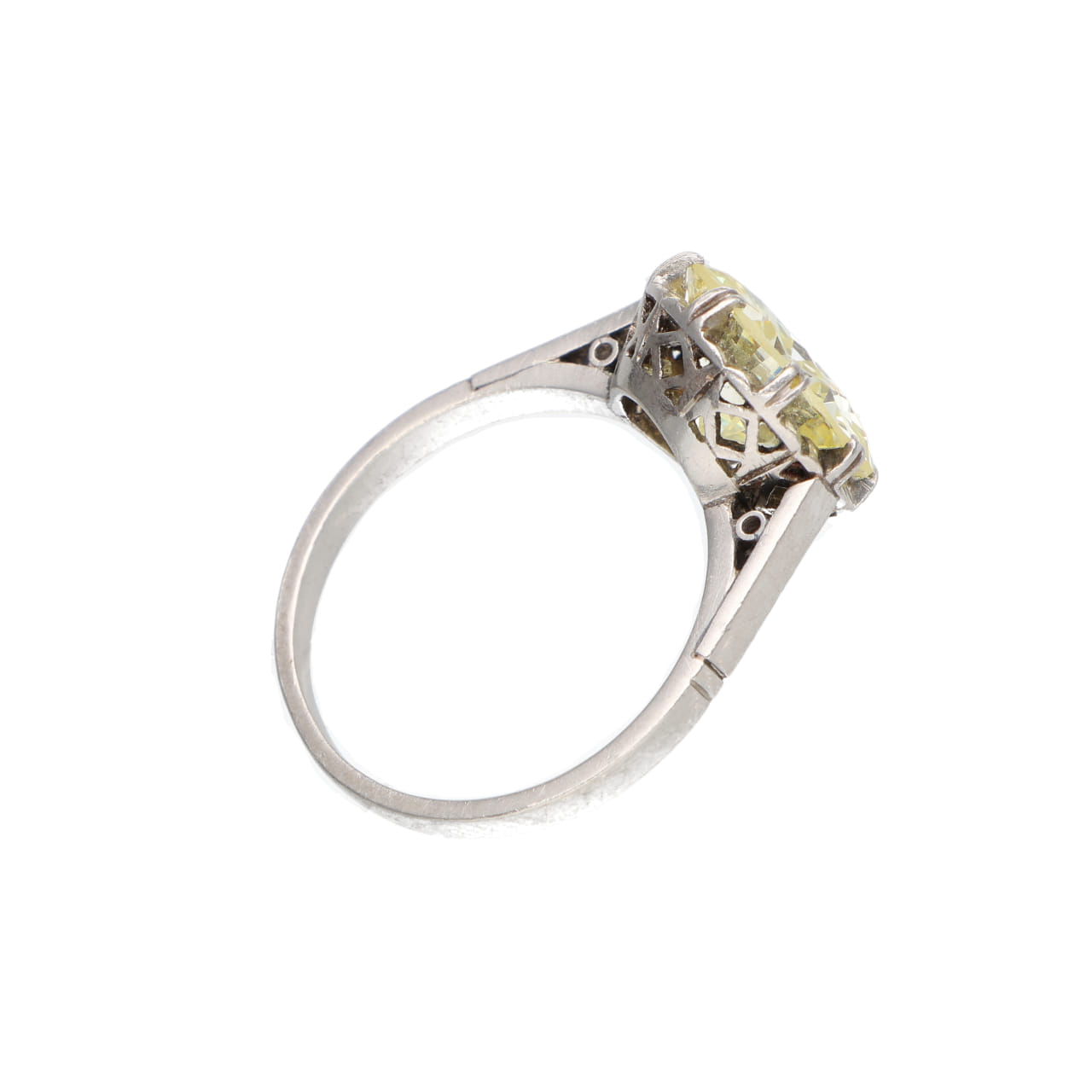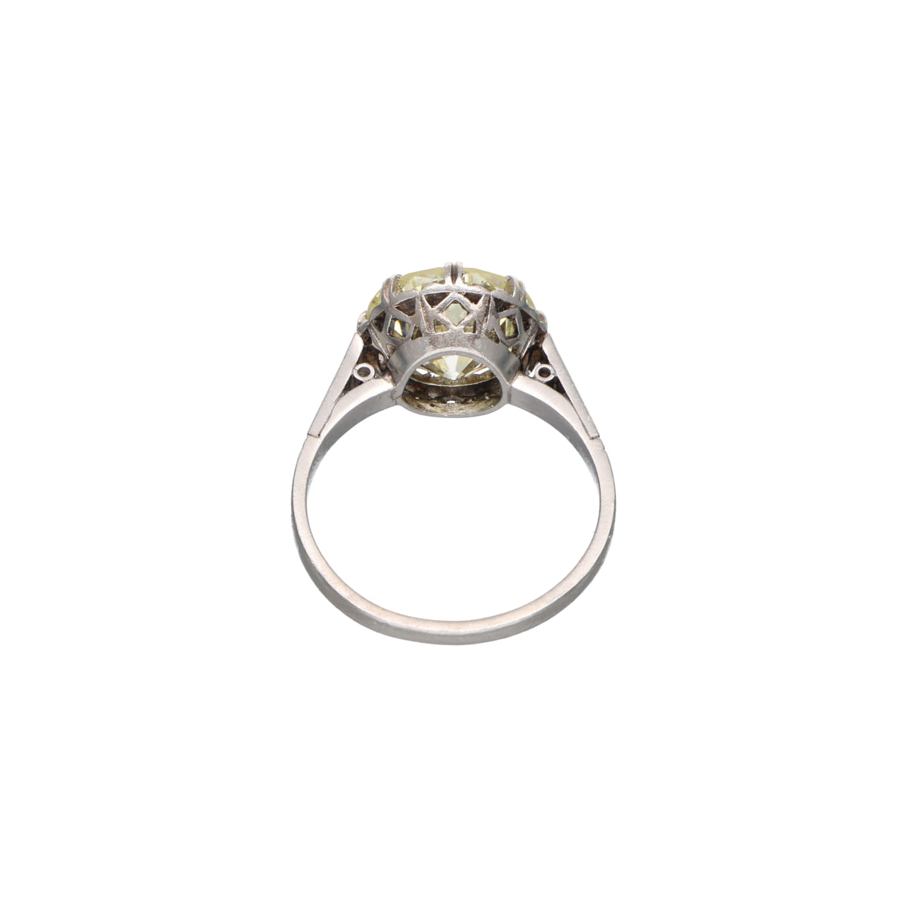 La montatura in platino, dalle linee geometriche tipiche dell’epoca Art Déco, incornicia la gemma con equilibrio e sofisticata essenzialità. Un gioiello di grande personalità, raro e senza tempo.