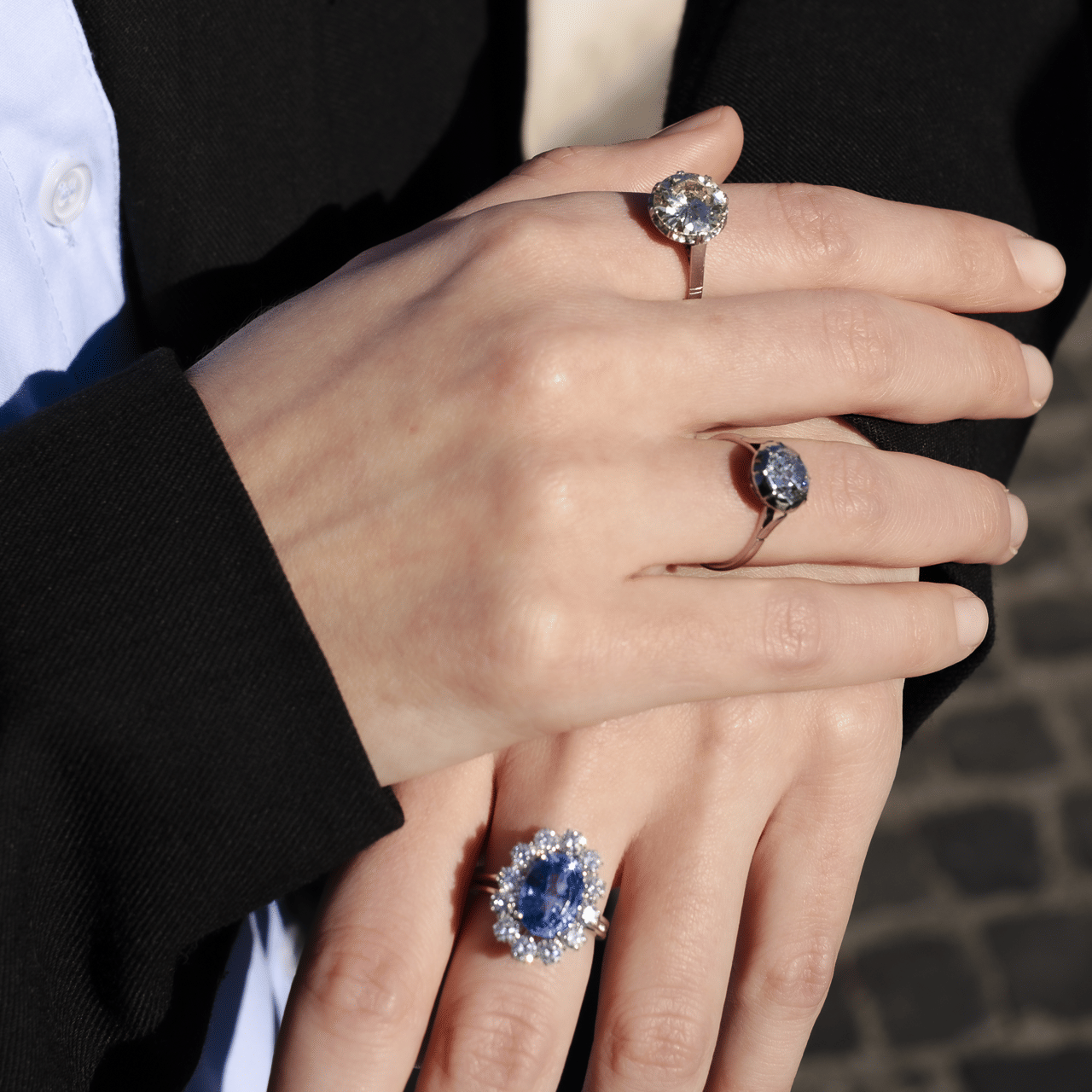 La pietra centrale presenta un’elegante tonalità naturale fancy light brownish yellow, una delicata sfumatura calda e luminosa che dona carattere senza rinunciare alla raffinatezza. Con purezza VVS, il diamante si distingue per l’eccezionale limpidezza, esaltando al massimo brillantezza e vivacità.