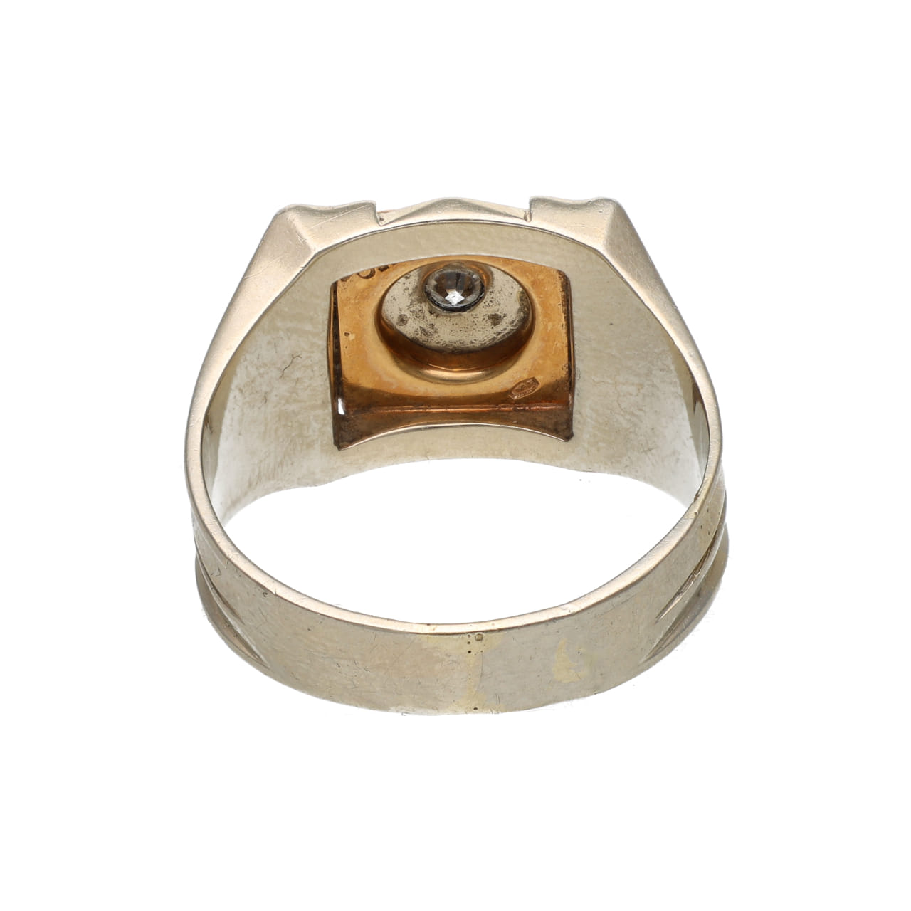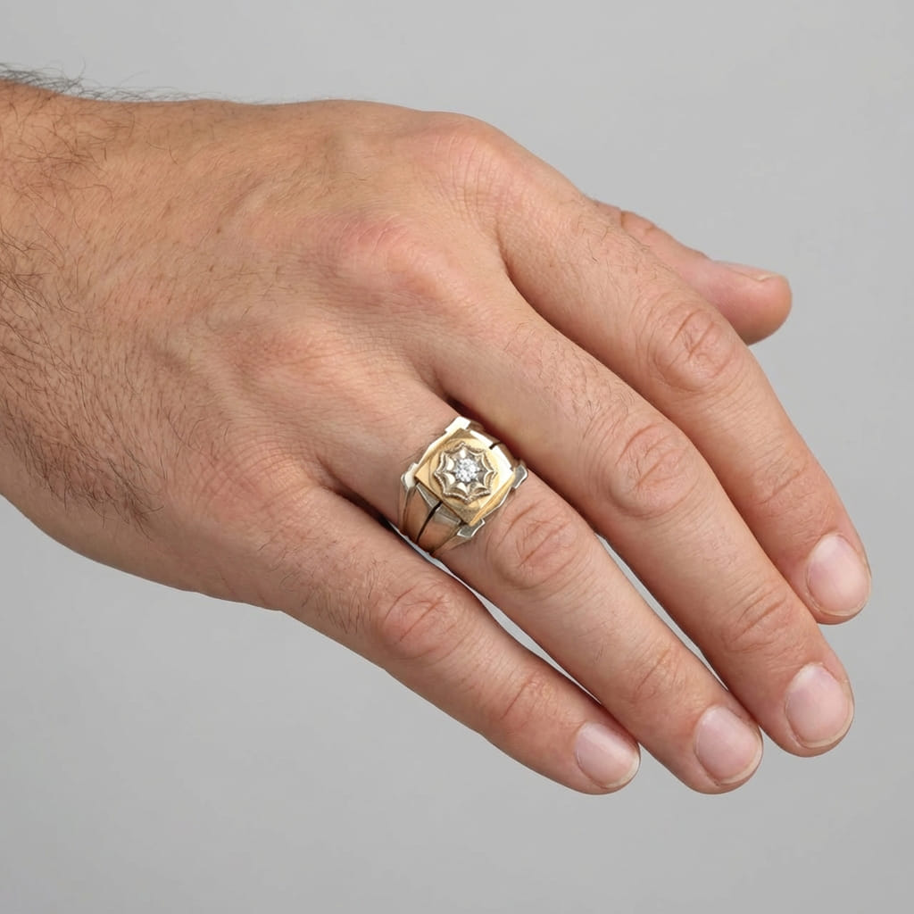 This 1940s two-tone gold ring delivers real vintage soulāsolid 11.5 g craftsmanship, luminous 18 kt white and yellow gold, and the crisp sparkle of a 0.18 ct brilliant-cut diamond (IāK, SI2). Itās confident, elegant, and ready to be worn when you want character on your handāfast.